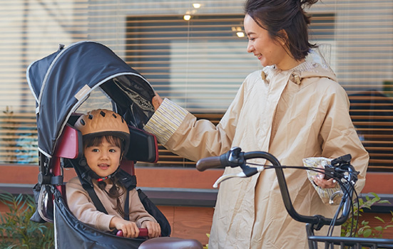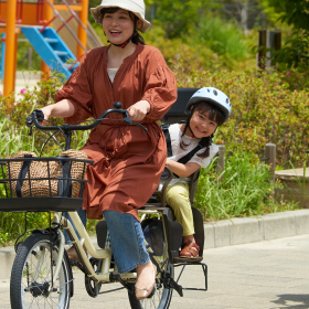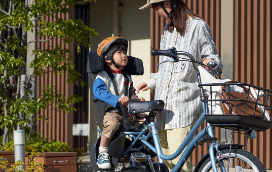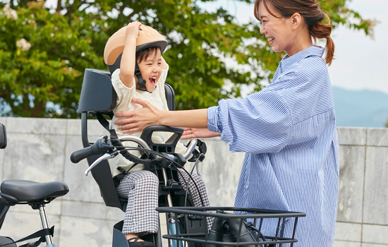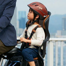 ワイドヘッドレスト - 万が一の転倒時にもお子様の頭を後頭部から側頭部までしっかり守れるよう、ヘルメットと同等の90%以上の衝撃吸収率にこだわりました。ヘルメットとワイドヘッドレストを同時に使用していれば、両方とも不使用の場合に比べて約90%も衝撃を軽減します。