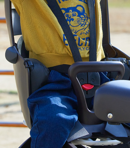アジャスタブルステップ - 成長に応じて高さが変えられるステップ。足元がぶらつかず安定し、車輪への巻き込みも防止します。